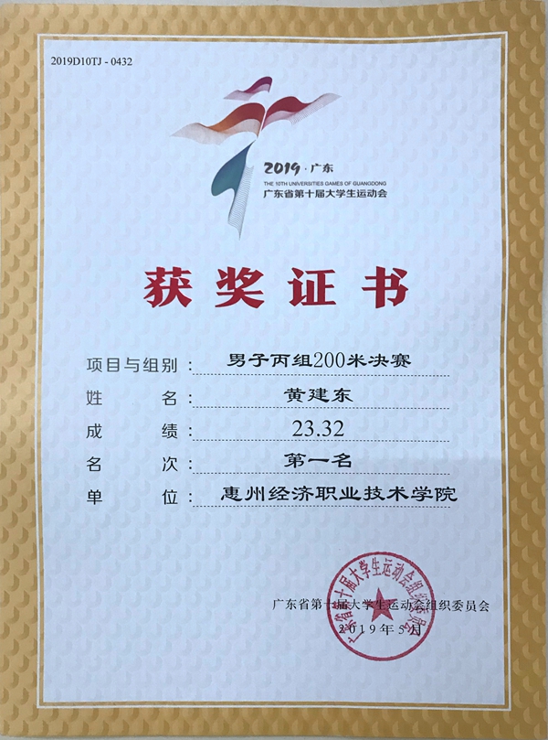 在田径项目中,黄建东同学获得男子丙组200米第一名、100米第五名,并达到国家二级田径运动员等级标准。叶伟广同学获得男子丙组铁饼第六名。