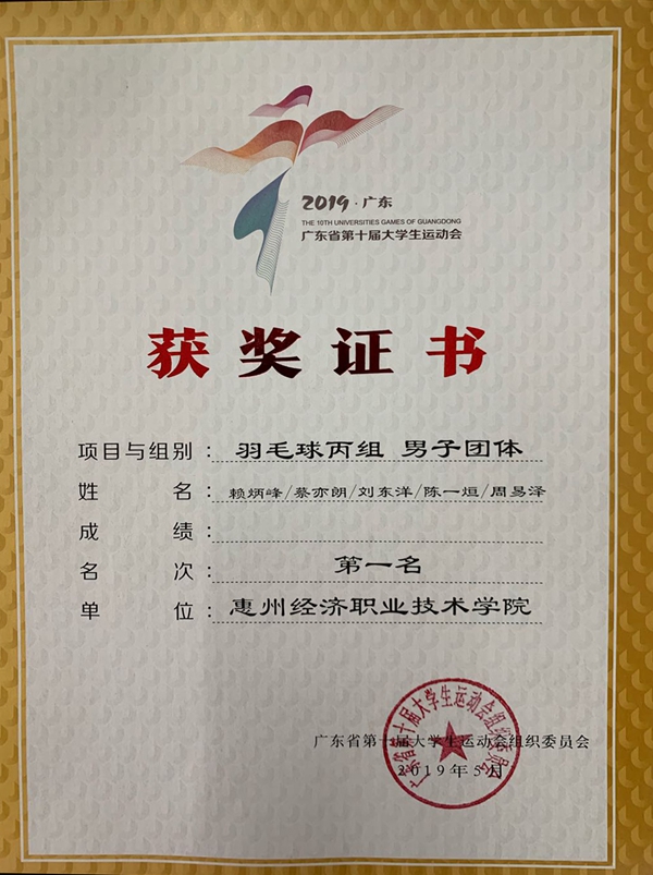 在羽毛球项目中,我校获团体总分第三名、“体育道德风尚运动队”,其中男子团体第一名、女子团体第八名。周易泽、陈捷源获混双第三名,陈一煊、蔡亦朗获男双第五名。吕品获羽毛球丙组项目教练员“体育道德风尚奖”,蔡亦朗、赖炳峰获羽毛球丙组项目运动员“体育道德风尚奖”。