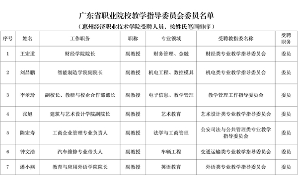 【喜讯】我校7位副教授受聘成为广东省职业院校教学指导委员会委员