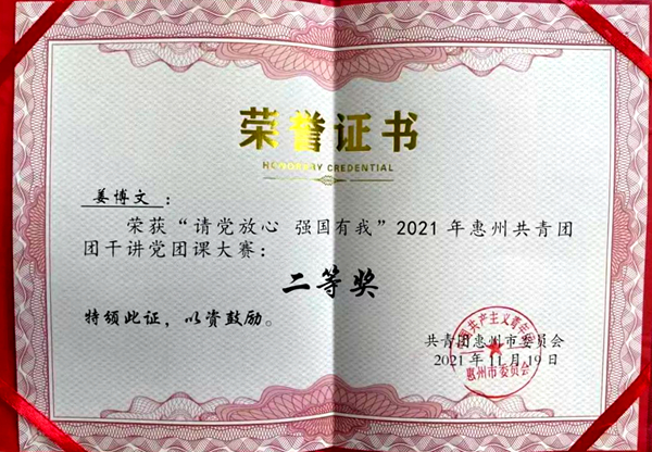 【喜讯】我校姜博文老师在惠州共青团团干讲党团课大赛中荣获二等奖!