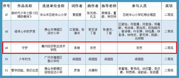 近日,广东省教育厅公布了美育浸润行动计划主题曲获奖作品名单,由我校教育与应用外语学院教师李娴作词、宋然作曲并演唱的歌曲《守梦》荣获二等奖。这是我校歌曲创作类参赛成绩的重大突破,受到省教育厅的通报表扬。