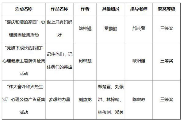 近日,广东省2021年“5.25”大学生心理健康月系列活动评比结果出炉,我校师生喜获3项三等奖。